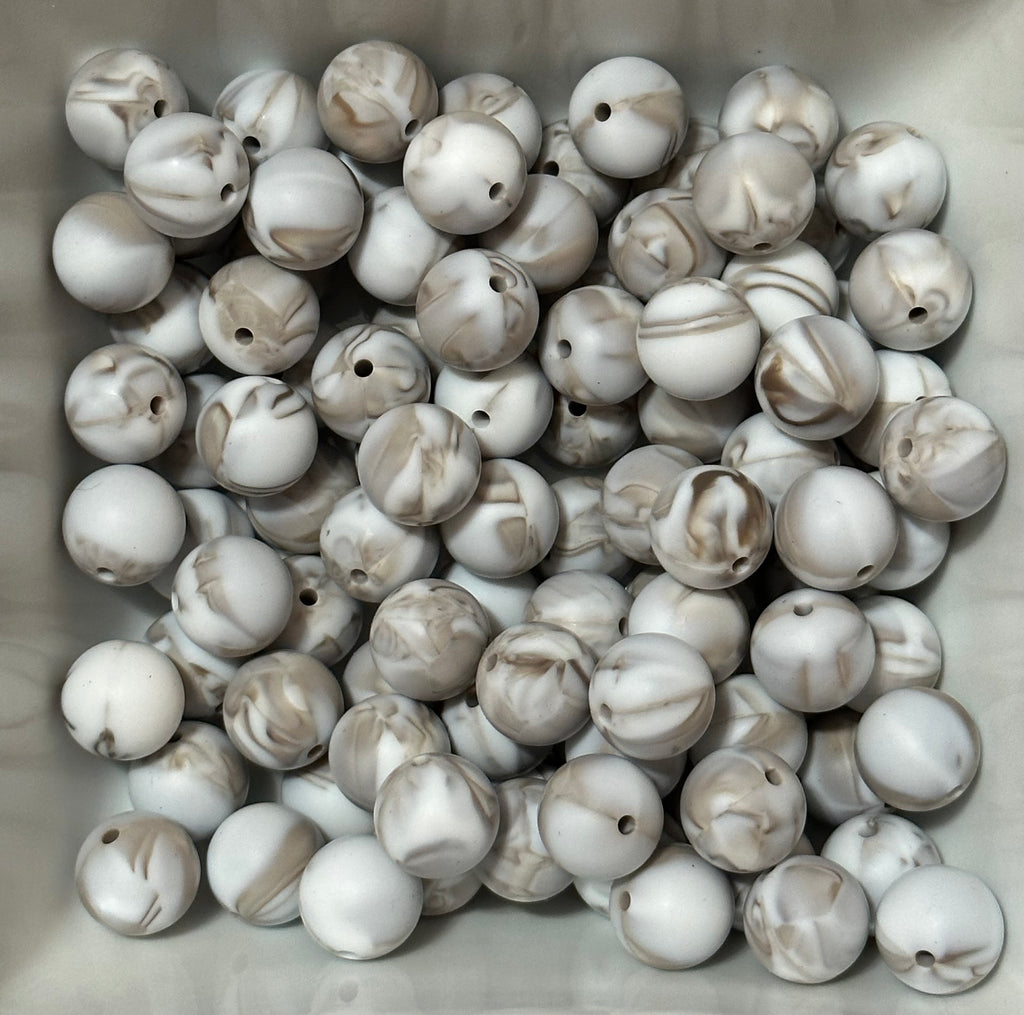 Grey Marble Print Silicone Beads - 10 Per Bag